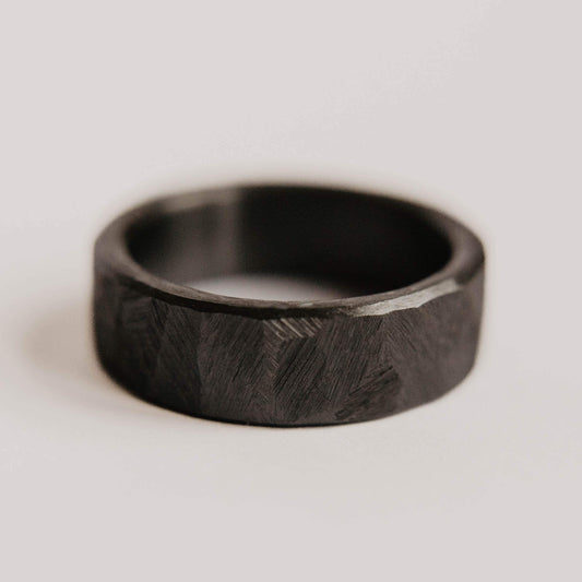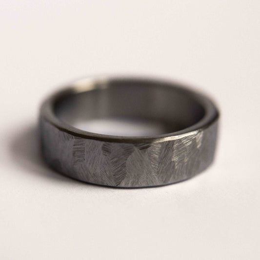 Hammered Black Zirconium Wedding Band