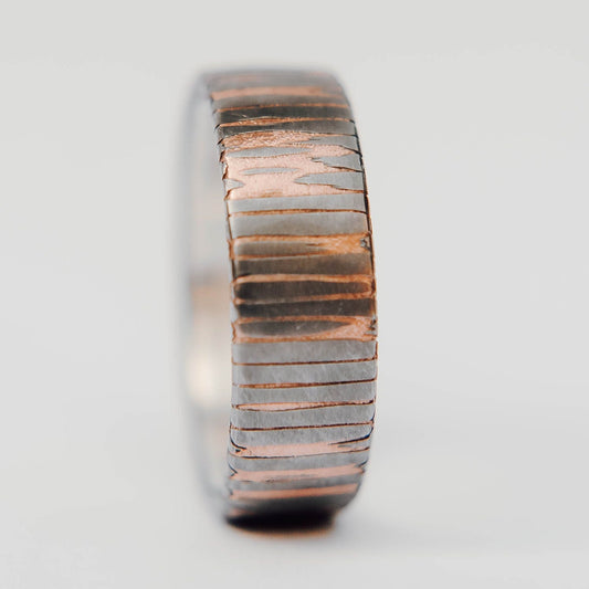 Etched Titanium-Niobium and Copper Wedding Band w/ Silver Liner