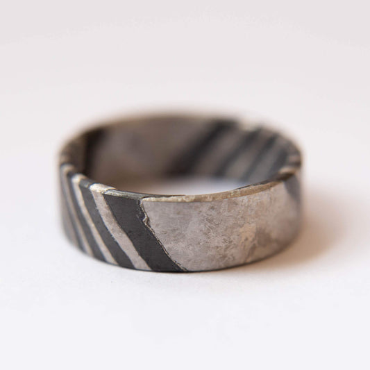 Distressed Zirconium and Titanium Damascus Wedding Band
